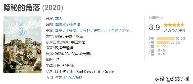 最近爆火的网剧《隐秘的角落》,豆瓣评分高达8.9,算是近年来现象级的高口碑网剧了,被誉为是最紧凑烧脑的国产悬疑剧。
