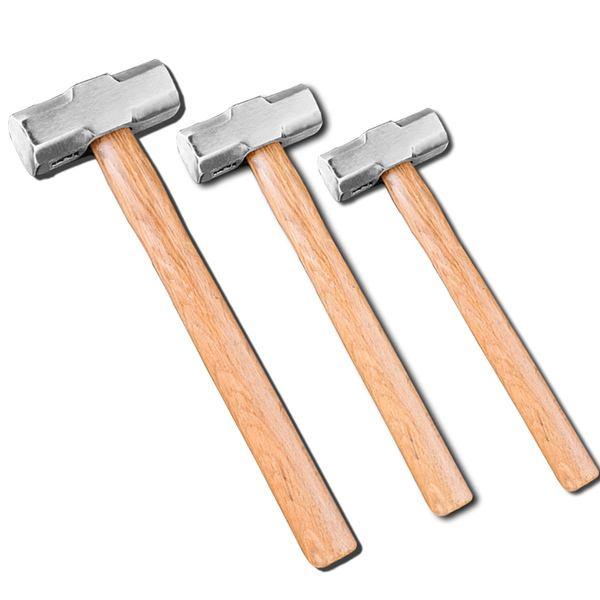 锤子分为三种型号,最大的为十二磅大锤,用于把大型石头敲开机灵鬼的工具。次之八磅锤我们称为二锤,用于把石头边沿多余部分敲除,最小型号的是单手握的,重量可跟据自己的手力量大小来定制,用于敲击錾子来击打石头除去多余或不想要的部份。