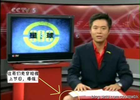 事件后续:央视体育频道主任江和平的话——“我们规定上身是要穿西装,但没规定下身一定要穿西裤,问题是他不该把腿露出来。”